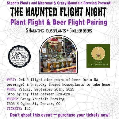 Join me for a one-of-a-kind evening where plants meet pints! Enjoy a curated beer flight featuring 5 flight-sized pours perfectly paired with 5 spooky-themed houseplants you’ll get to take home. From eerie foliage to festive touches, this seasonal event is the perfect way to celebrate fall.